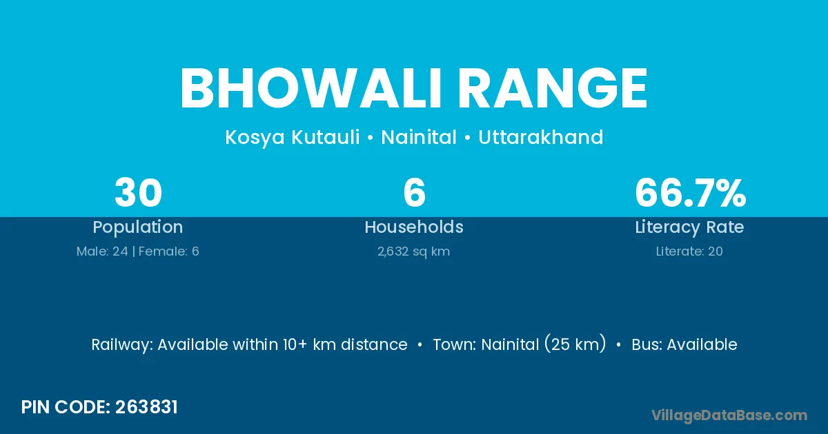 Nainital (25 km) is the nearest town to Bhowali Range village for major economic activities and is located approximately 25 km away.