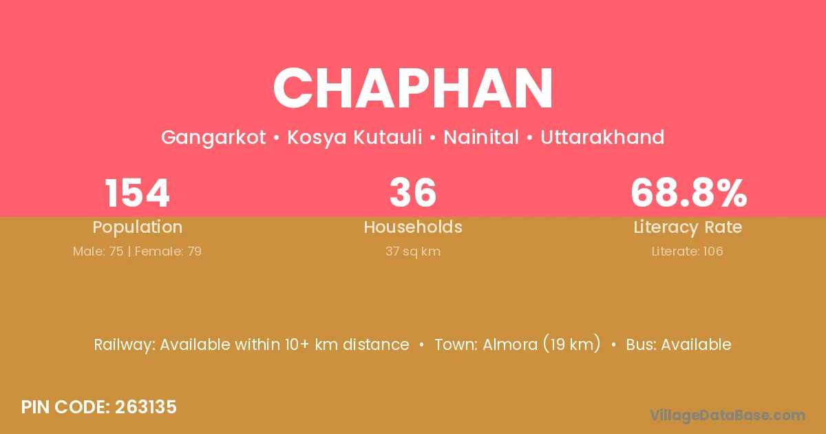 Almora (19 km) is the nearest town to Chaphan village for major economic activities and is located approximately 19 km away.