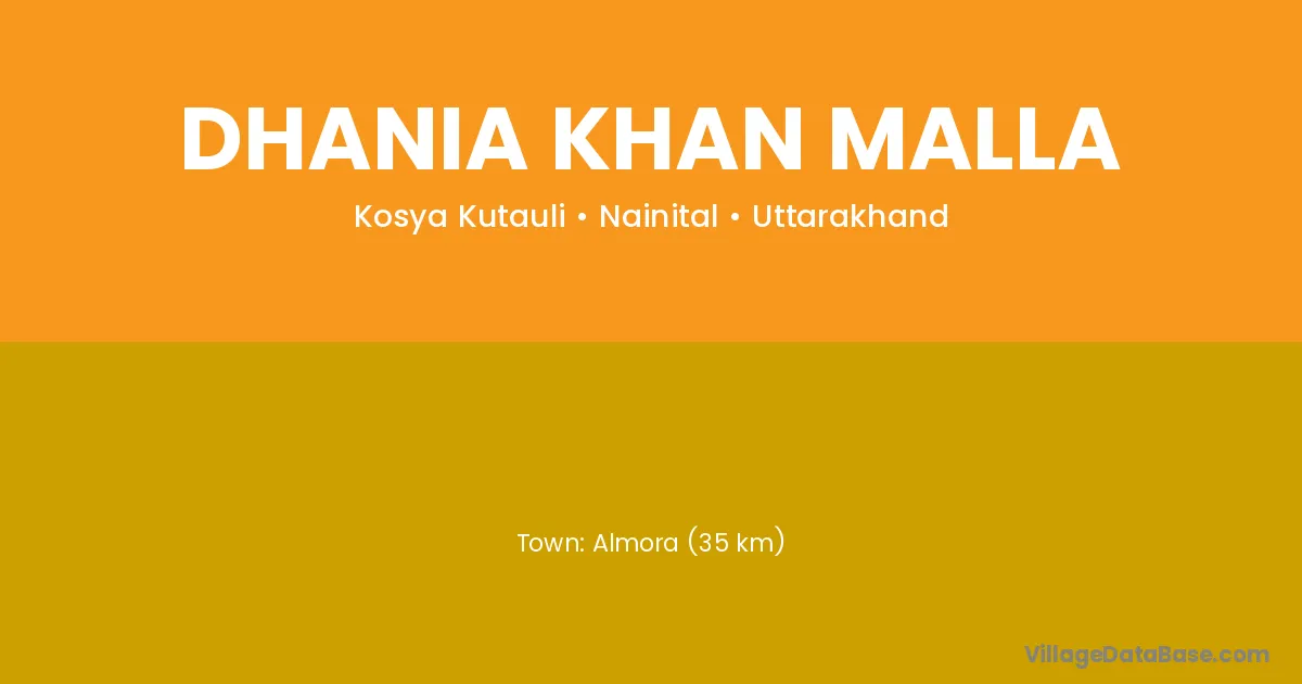 Almora (35 km) is the nearest town to Dhania Khan Malla village for major economic activities and is located approximately 35 km away.