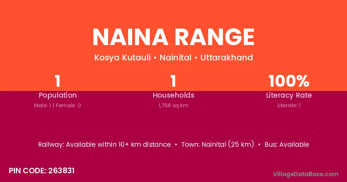 Nainital (25 km) is the nearest town to Naina Range village for major economic activities and is located approximately 25 km away.