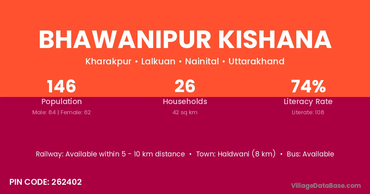 Haldwani (8 km) is the nearest town to Bhawanipur Kishana village for major economic activities and is located approximately 8 km away.