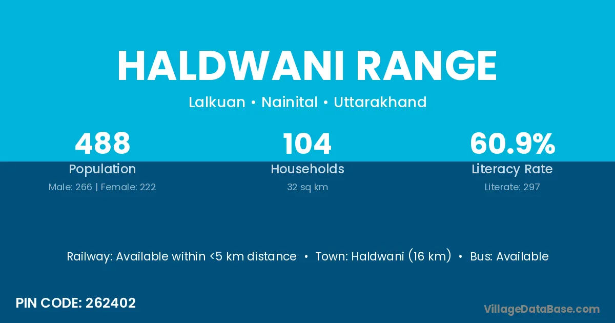 Haldwani (16 km) is the nearest town to Haldwani Range village for major economic activities and is located approximately 16 km away.