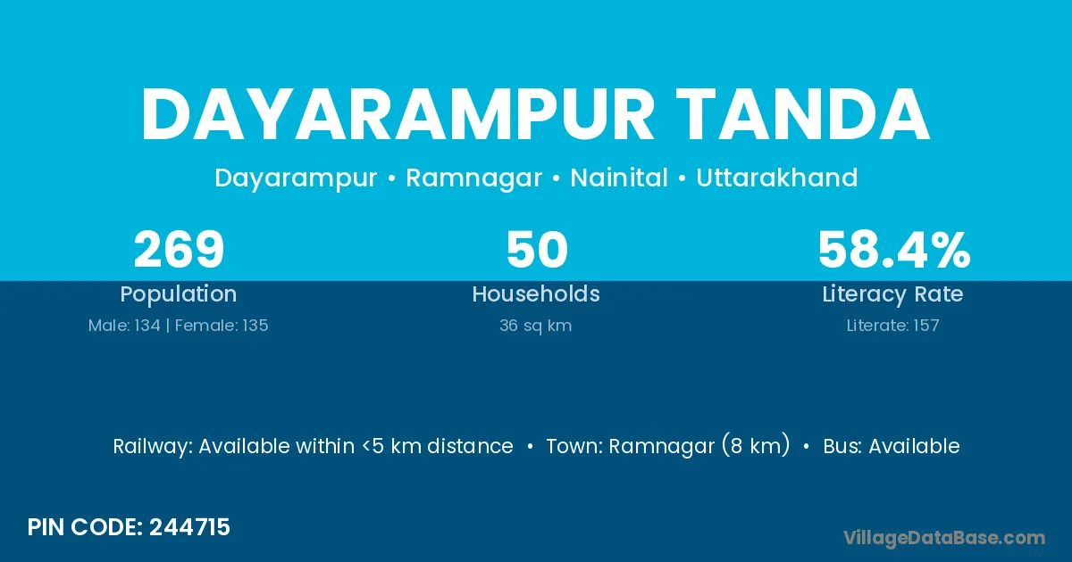 Dayarampur Tanda village has a total population of 269 people, of which 134 are males and 135 are females.