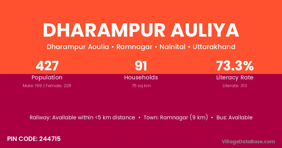 Dharampur Auliya village has a total population of 427 people, of which 199 are males and 228 are females.