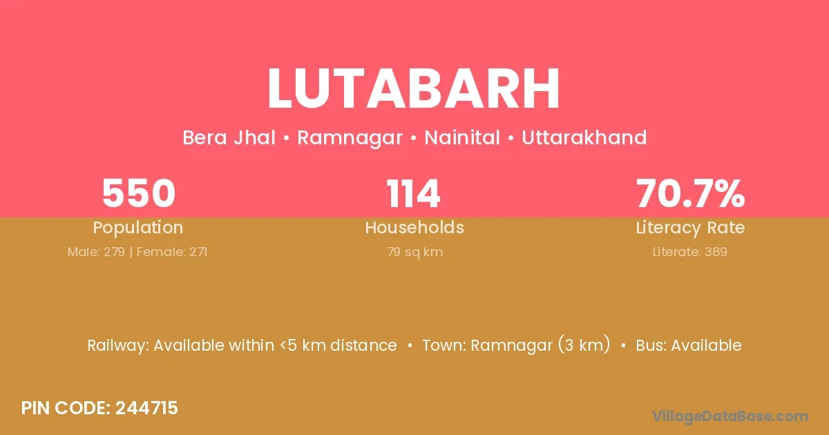 Ramnagar (3 km) is the nearest town to Lutabarh village for major economic activities and is located approximately 3 km away.