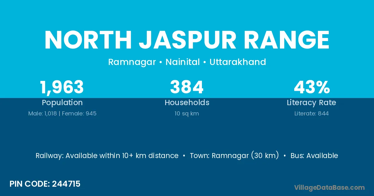 Ramnagar (30 km) is the nearest town to North Jaspur Range village for major economic activities and is located approximately 30 km away.