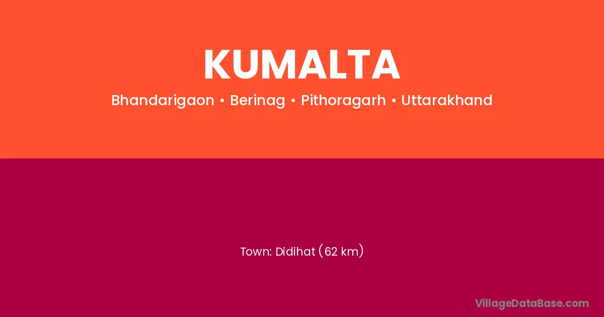 Didihat (62 km) is the nearest town to Kumalta village for major economic activities and is located approximately 62 km away.