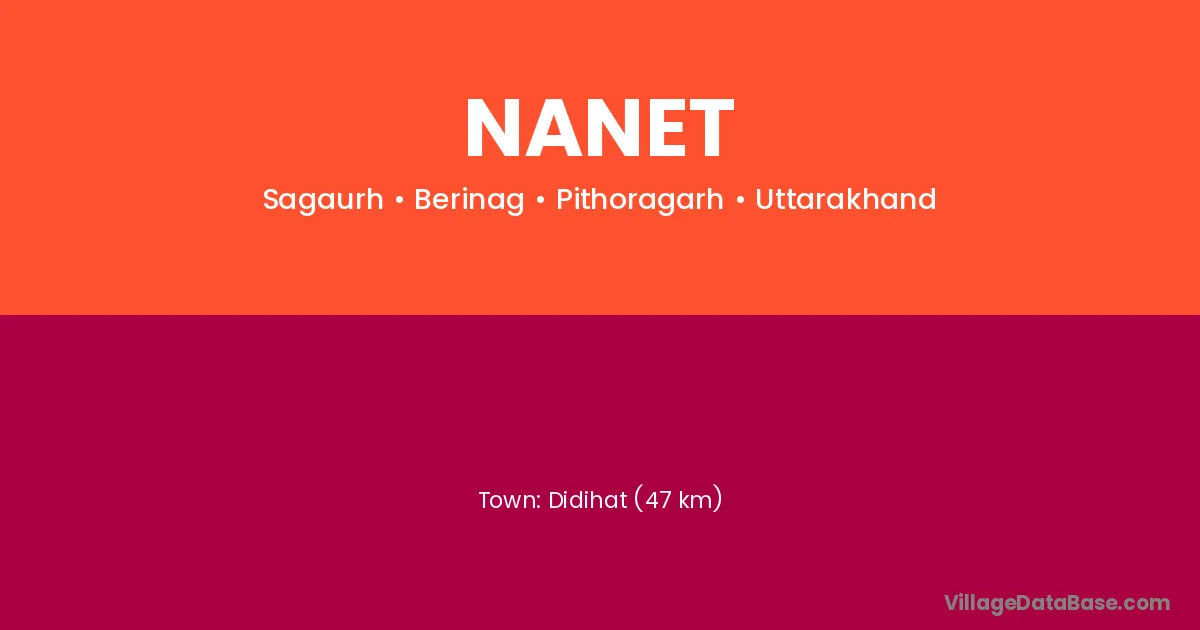 Didihat (47 km) is the nearest town to Nanet village for major economic activities and is located approximately 47 km away.
