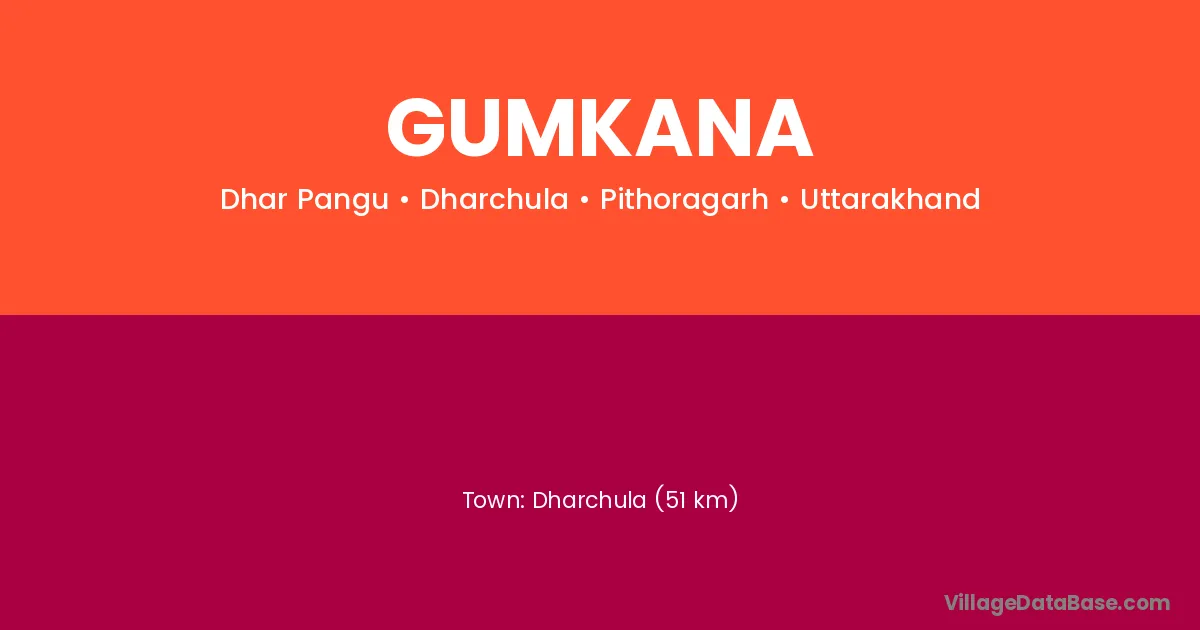 Dharchula (51 km) is the nearest town to Gumkana village for major economic activities and is located approximately 51 km away.