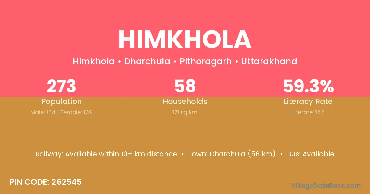 Dharchula (56 km) is the nearest town to Himkhola village for major economic activities and is located approximately 56 km away.