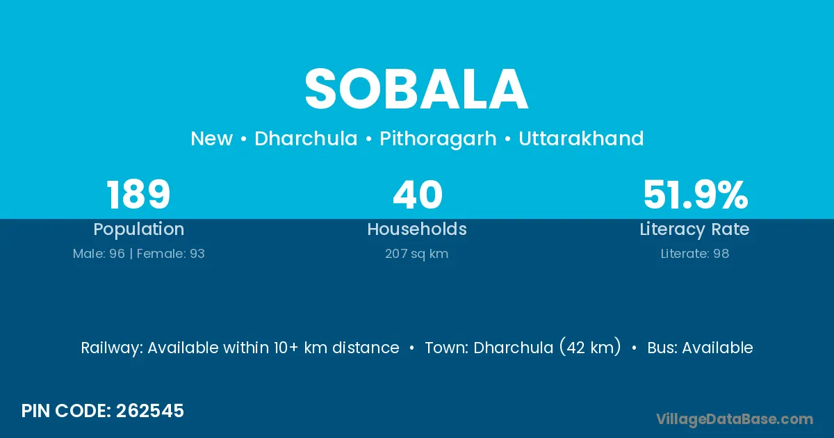 Dharchula (42 km) is the nearest town to Sobala village for major economic activities and is located approximately 42 km away.
