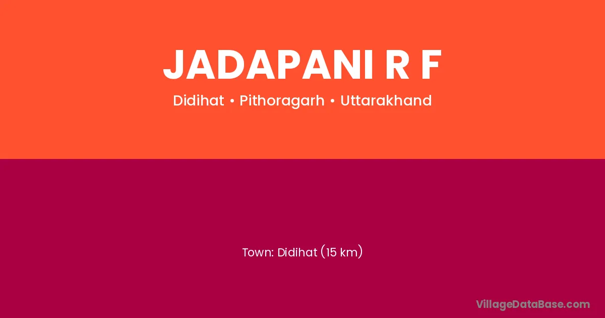 Didihat (15 km) is the nearest town to Jadapani R F village for major economic activities and is located approximately 15 km away.