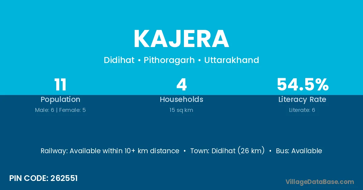 Didihat (26 km) is the nearest town to Kajera village for major economic activities and is located approximately 26 km away.