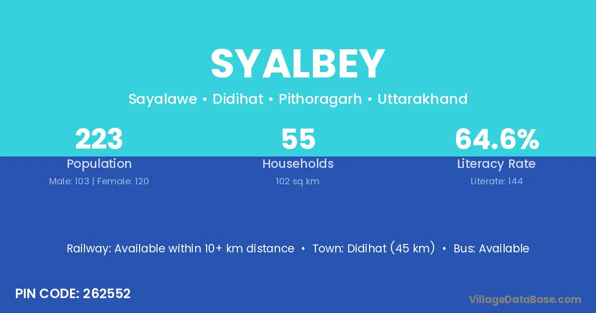 Didihat (45 km) is the nearest town to Syalbey village for major economic activities and is located approximately 45 km away.