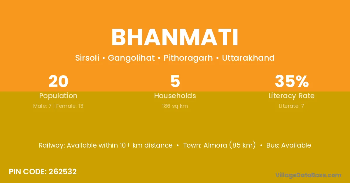 Almora (85 km) is the nearest town to Bhanmati village for major economic activities and is located approximately 85 km away.