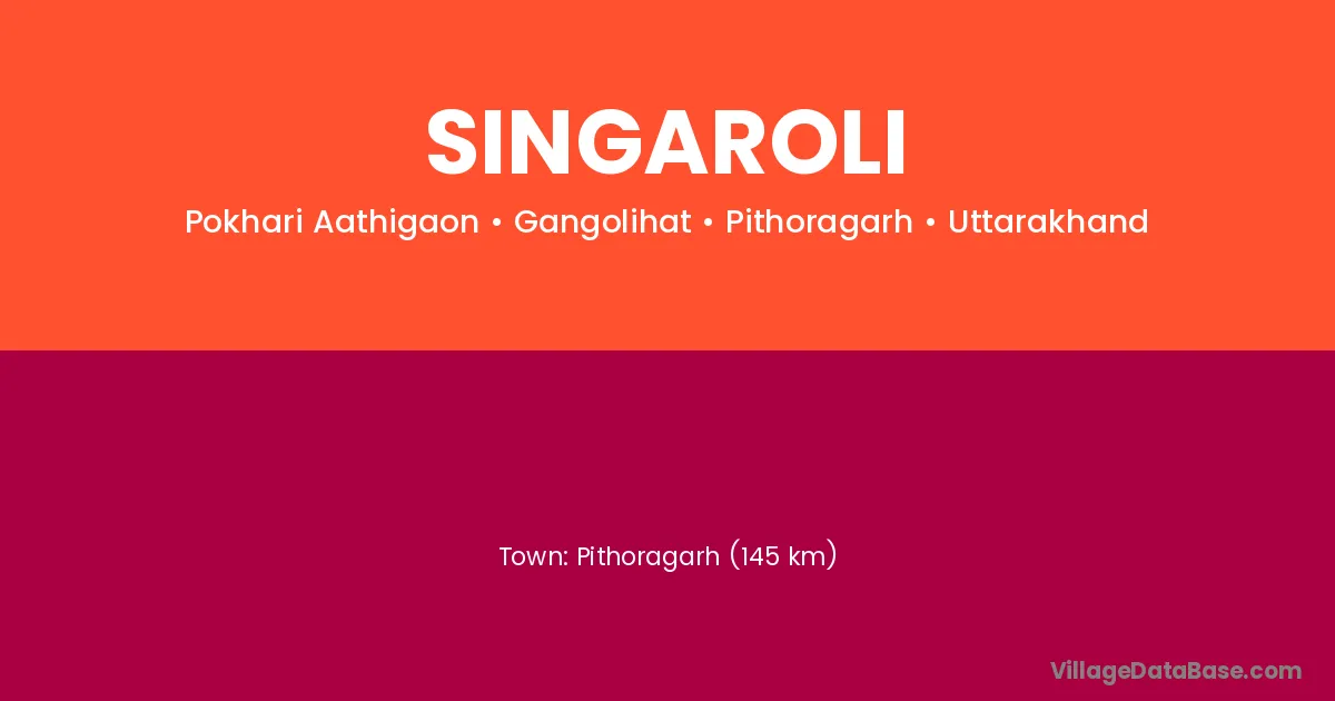 Pithoragarh (145 km) is the nearest town to Singaroli village for major economic activities and is located approximately 145 km away.