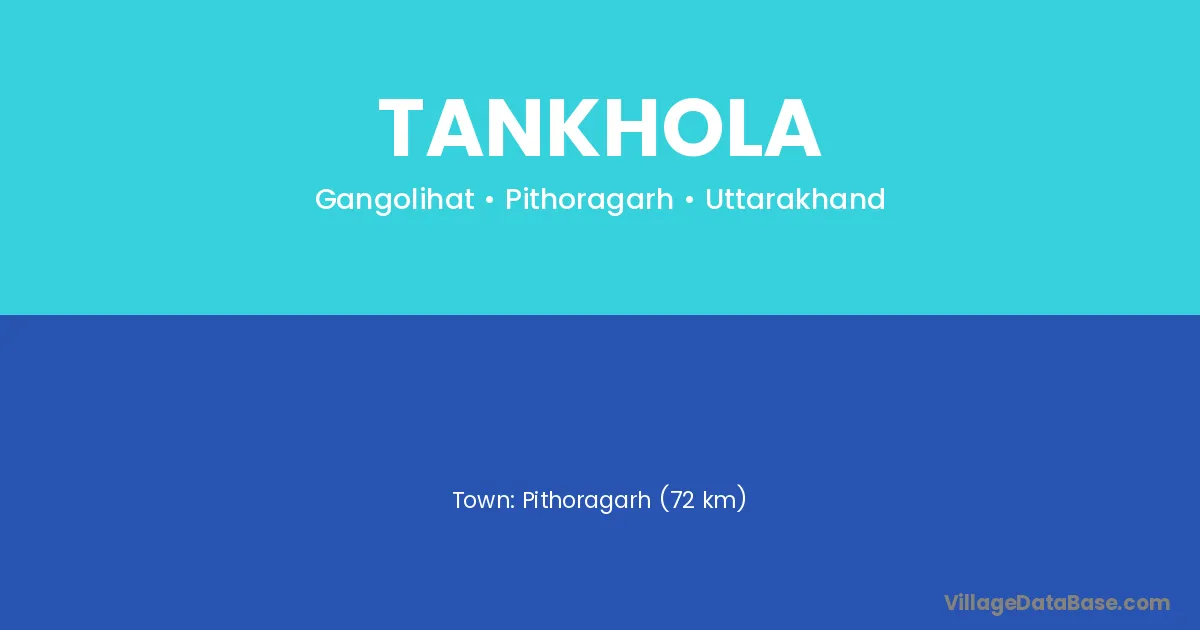 Pithoragarh (72 km) is the nearest town to Tankhola village for major economic activities and is located approximately 72 km away.