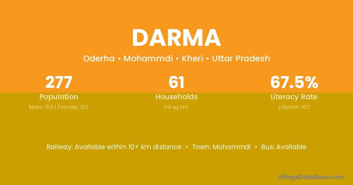 Darma village has a total population of 276 people, of which 123 are males and 153 are females.