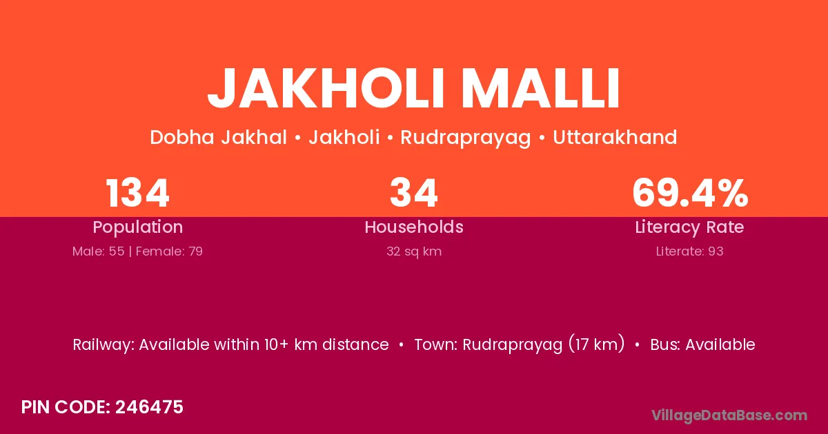 Rudraprayag (17 km) is the nearest town to Jakholi Malli village for major economic activities and is located approximately 17 km away.