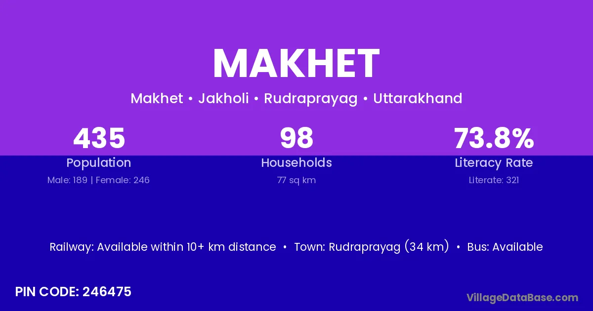Rudraprayag (34 km) is the nearest town to Makhet village for major economic activities and is located approximately 34 km away.