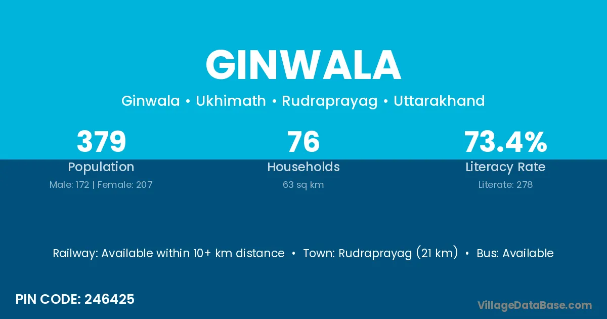 Rudraprayag (21 km) is the nearest town to Ginwala village for major economic activities and is located approximately 21 km away.