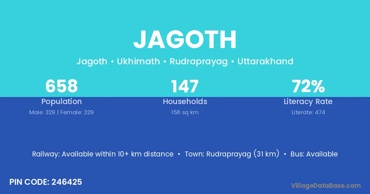 Rudraprayag (31 km) is the nearest town to Jagoth village for major economic activities and is located approximately 31 km away.