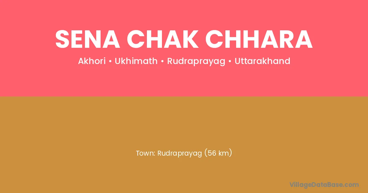 Rudraprayag (56 km) is the nearest town to Sena Chak Chhara village for major economic activities and is located approximately 56 km away.