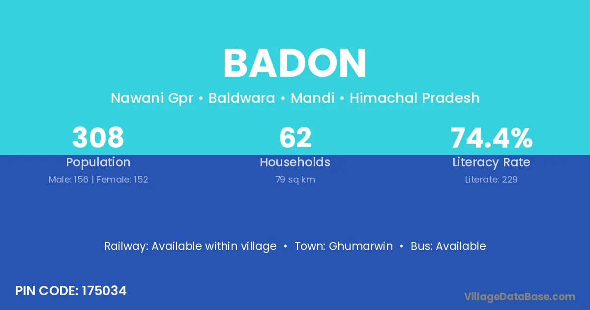Kirtinagar (16 km) is the nearest town to Badon village for major economic activities and is located approximately 16 km away.