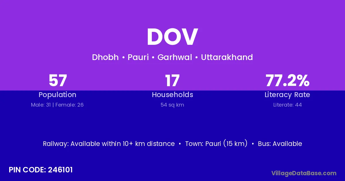 Devprayag (25 km) is the nearest town to Dov village for major economic activities and is located approximately 25 km away.