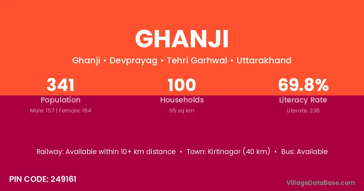 Ghanji village has a total population of 341 people, of which 157 are males and 184 are females.