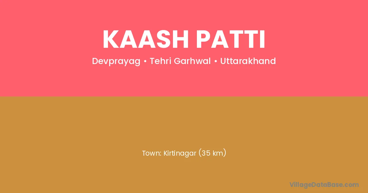 Kirtinagar (35 km) is the nearest town to Kaash Patti village for major economic activities and is located approximately 35 km away.