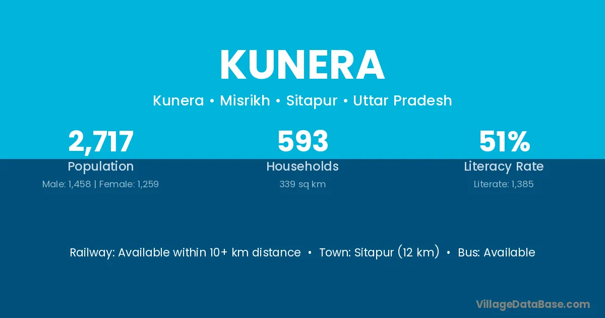 Kirtinagar (21 km) is the nearest town to Kunera village for major economic activities and is located approximately 21 km away.