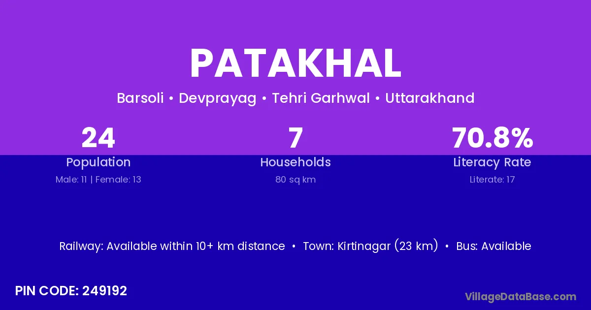 Kirtinagar (23 km) is the nearest town to Patakhal village for major economic activities and is located approximately 23 km away.