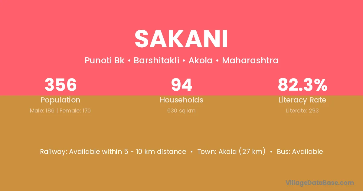Sakani village has a total population of 179 people, of which 80 are males and 99 are females.
