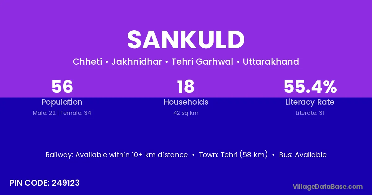 Devprayag (37 km) is the nearest town to Sankuld village for major economic activities and is located approximately 37 km away.