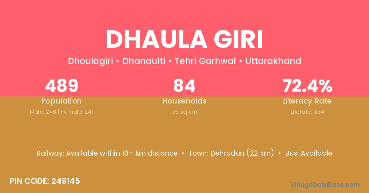 Dhaula Giri village has a total population of 489 people, of which 248 are males and 241 are females.