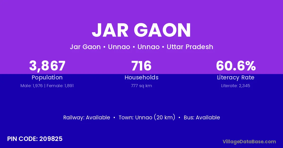 Jar Gaon village has a total population of 833 people, of which 426 are males and 407 are females.