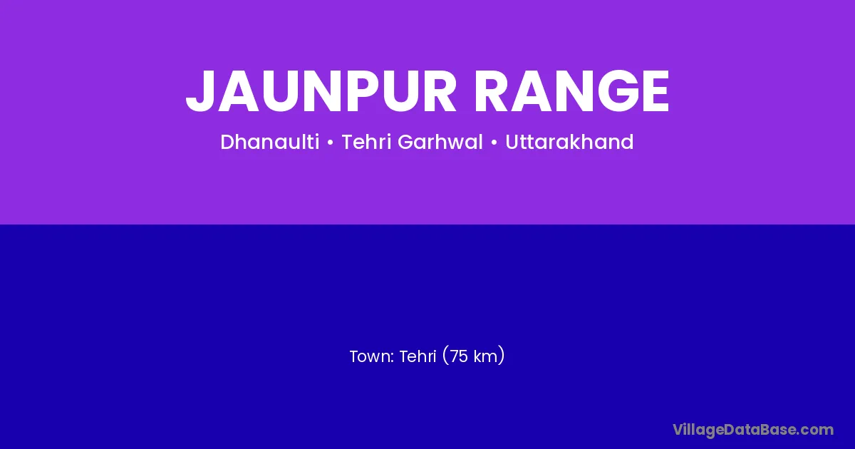 Tehri (75 km) is the nearest town to Jaunpur Range village for major economic activities and is located approximately 75 km away.