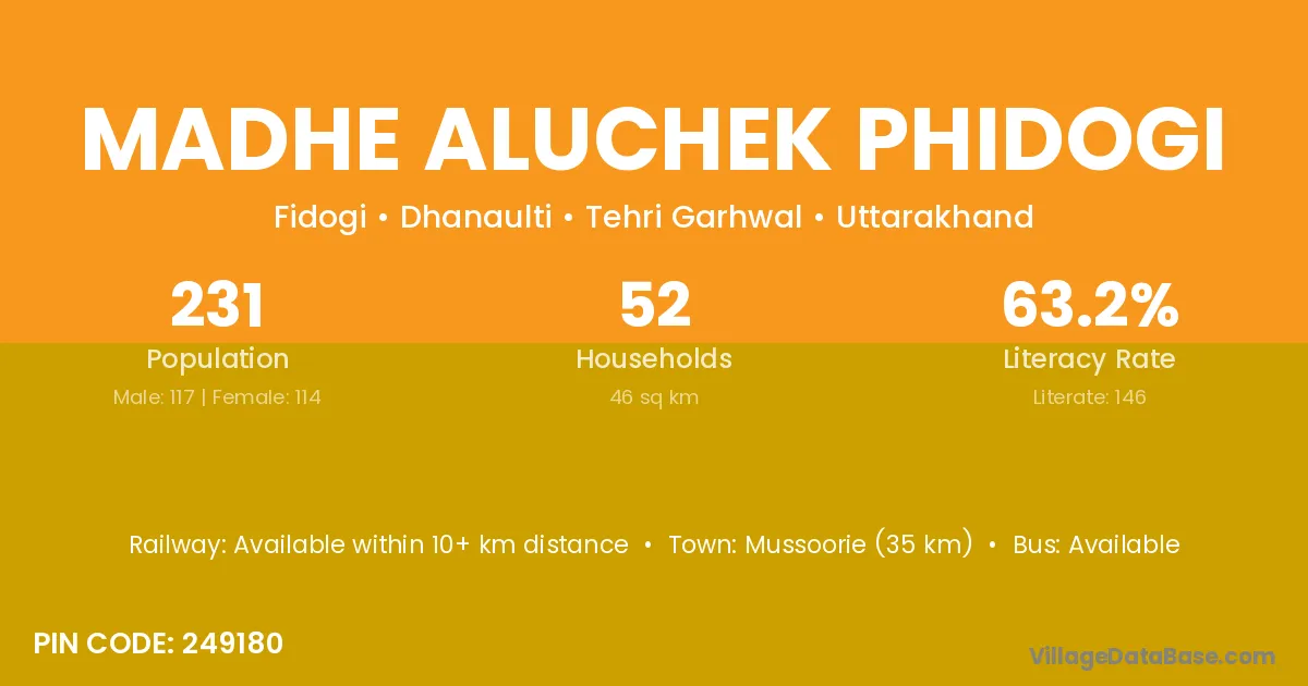 Madhe Aluchek Phidogi village is located in the Dhanaulti Tehsil of the Tehri Garhwal district in Uttarakhand .