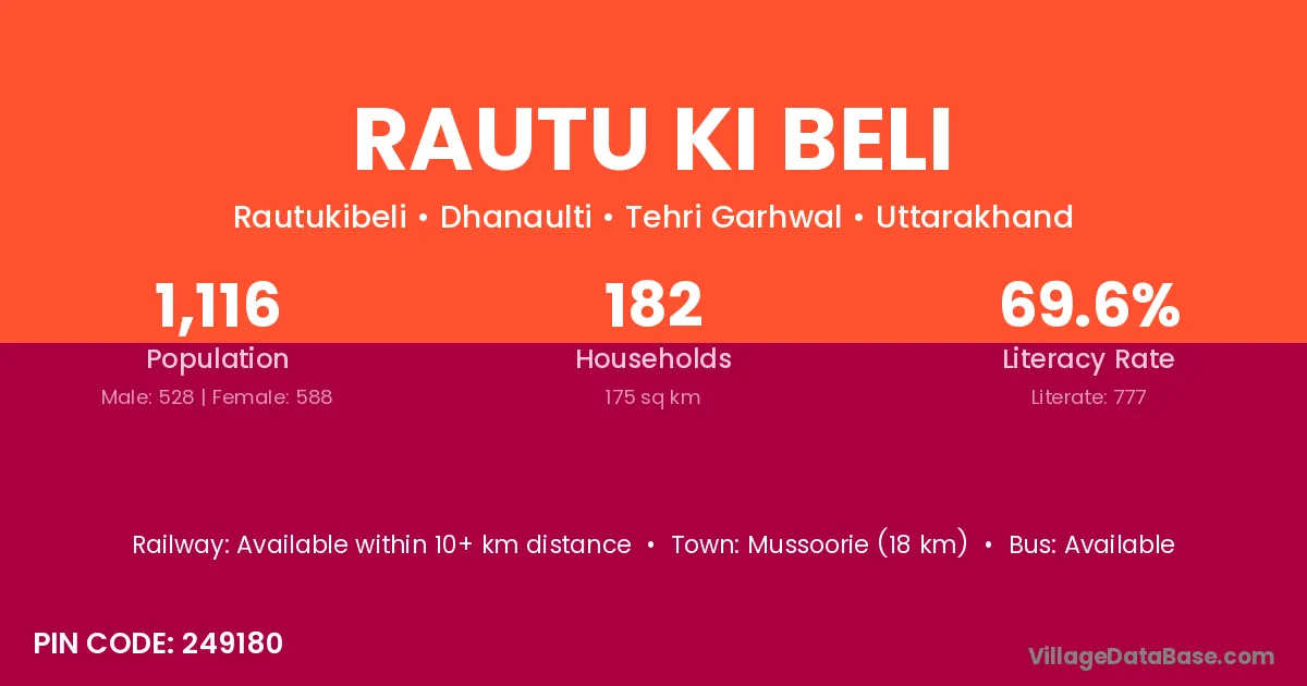 Rautu Ki Beli village has a total population of 1,116 people, of which 528 are males and 588 are females.
