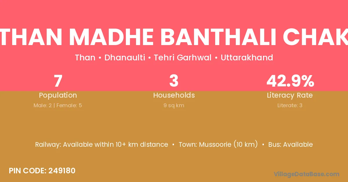 Than Madhe Banthali Chak village has a total population of 7 people, of which 2 are males and 5 are females.