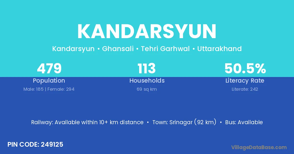 Kandarsyun village has a total population of 479 people, of which 185 are males and 294 are females.