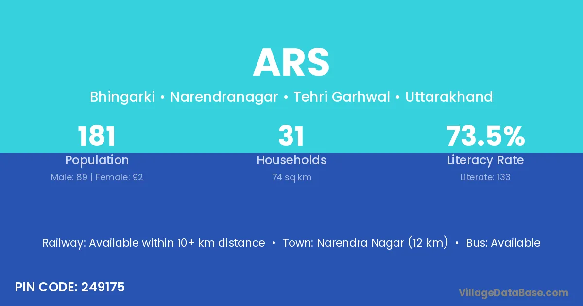 Narendra Nagar (12 km) is the nearest town to Ars village for major economic activities and is located approximately 12 km away.