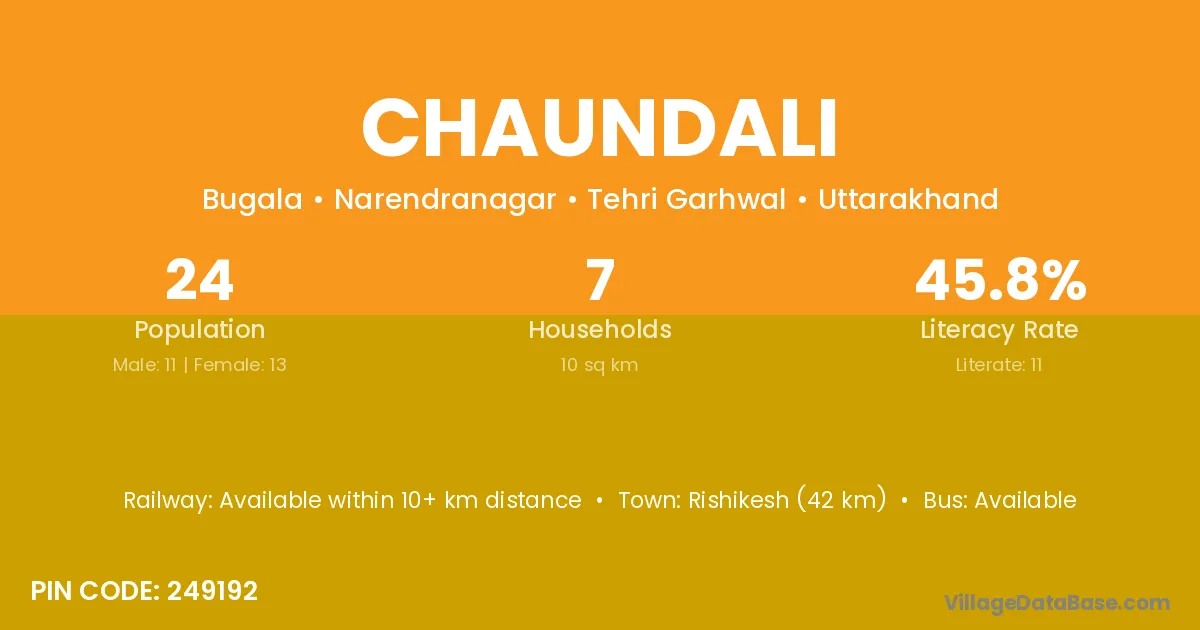 Chaundali village has a total population of 24 people, of which 11 are males and 13 are females.