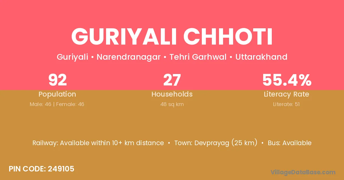 Devprayag (25 km) is the nearest town to Guriyali Chhoti village for major economic activities and is located approximately 25 km away.