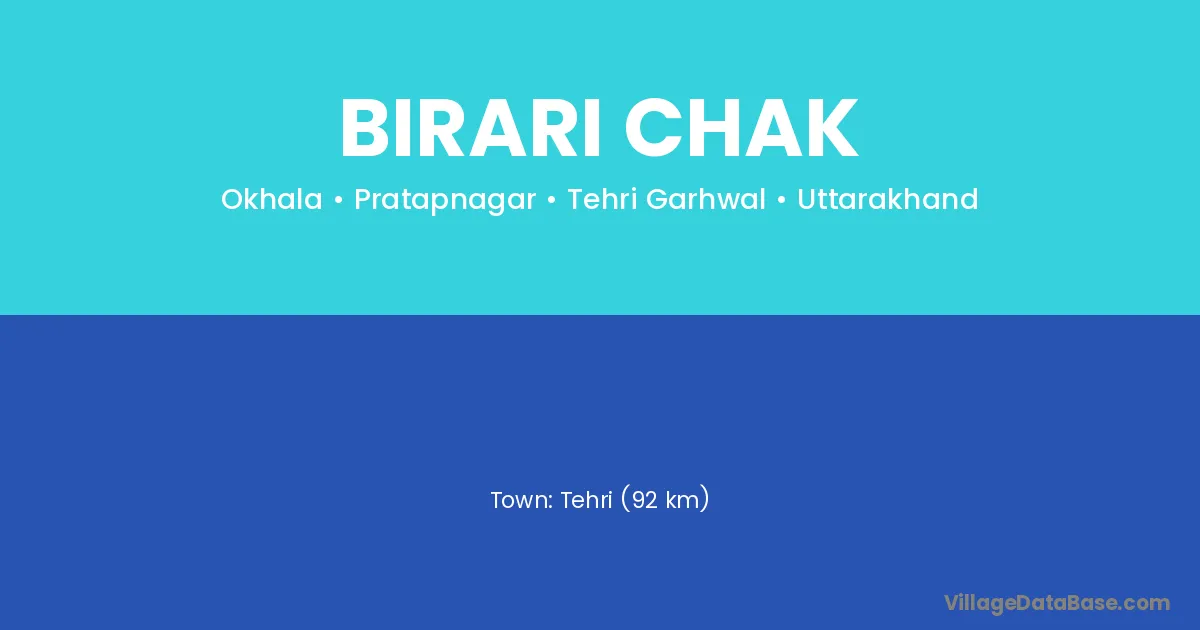 Tehri (92 km) is the nearest town to Birari Chak village for major economic activities and is located approximately 92 km away.