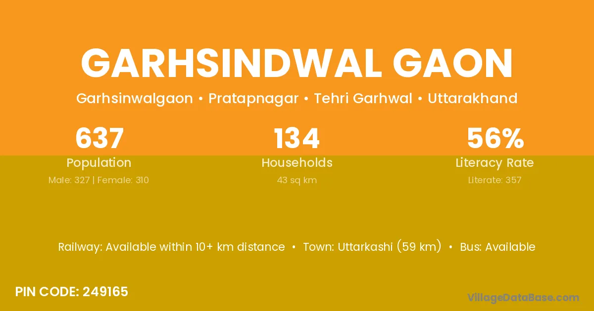 Garhsindwal Gaon village has a total population of 637 people, of which 327 are males and 310 are females.