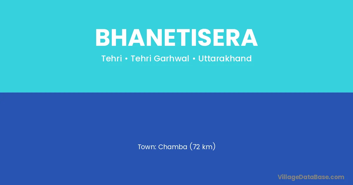 Chamba (72 km) is the nearest town to Bhanetisera village for major economic activities and is located approximately 72 km away.