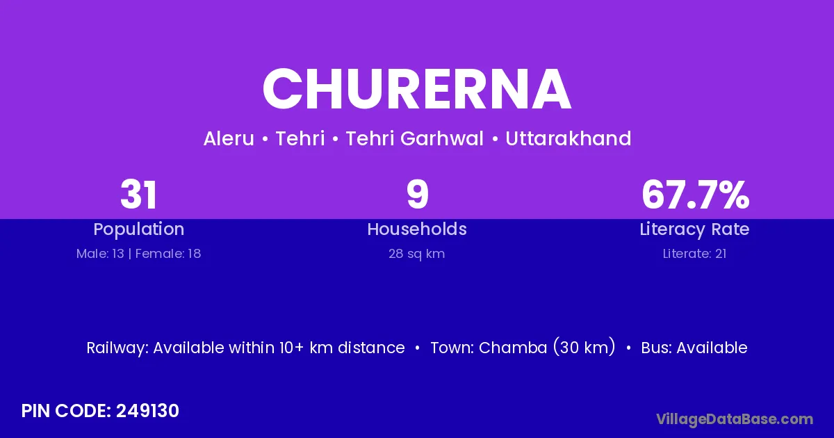 According to Census 2011 information, the village code of Churerna village is 249130.