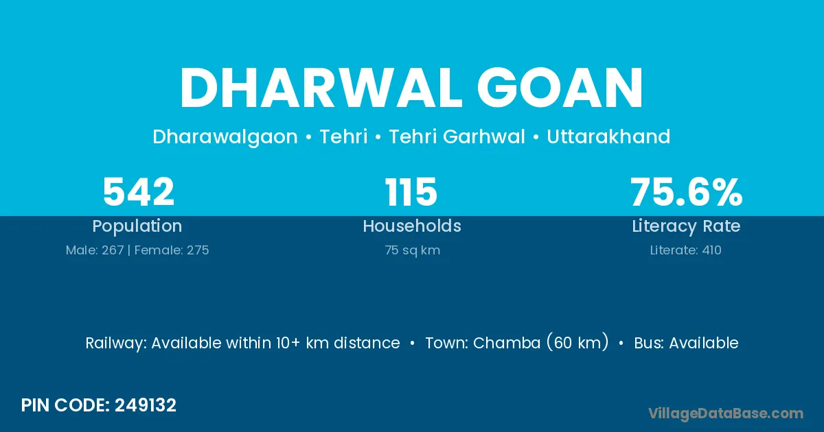 Dharwal Goan village has a total population of 542 people, of which 267 are males and 275 are females.